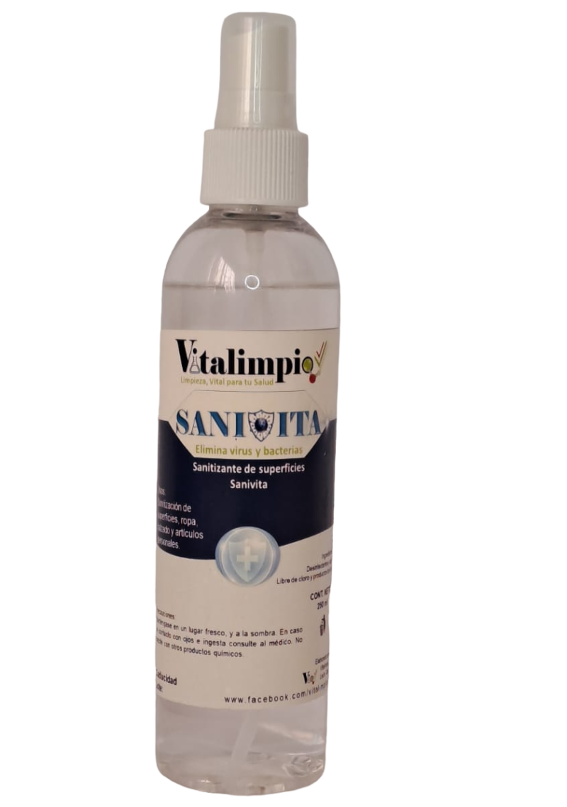 Sanivita, Sanitizante líquido para superficies, en envase con atomizador de 60 mL, con atomizador de 250 mL, 1 litro, 5 litros, 10litros y 20 litros
